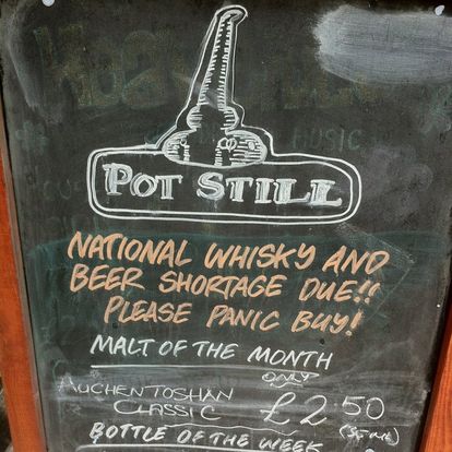 A couple years later, our travels sent us to the UK. I was spending a couple weeks at a time driving around England learning how to drive on the wrong side of the car, on the wrong side of the road. That company sure did have faith in me. I only hit a few curbs and after a few two week long trips I was swearing at people for not knowing how to drive. Bloody idiots. At some point I was staying in a small town in the north of England running one of our deployment and training sessions. My aforementioned coworker Russell was doing the same up in Edinburgh. We had a few days between classes and decided to meet up in Glasgow for a long weekend. We made the decision early on that if we were going to be in Scotland, we had better drink some scotch. I believe we asked the folks at the hotel about local whisky bars, and we were directed towards a pub called The Pot Still which was within walking distance of our hotel.